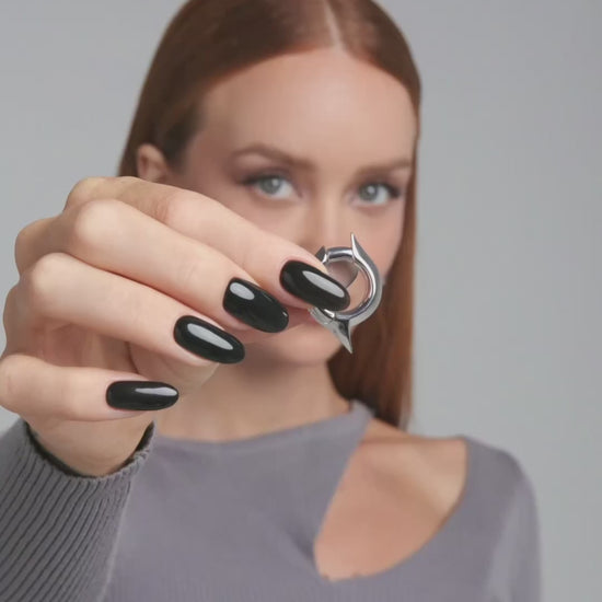 High-polished hoop hangers with a fluid arc that tapers into precise points. Made of stainless steel. Shop the Comet series.