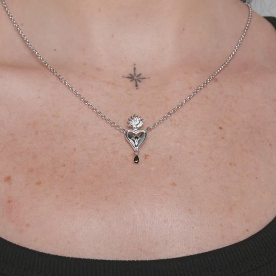A demi-fine, 925 sterling silver cable chain necklace with a pendant of our embellished, iconic sacred heart. Features an adjustable length. Shop The Sacrament series. Part of the Eternal Amour collection.
