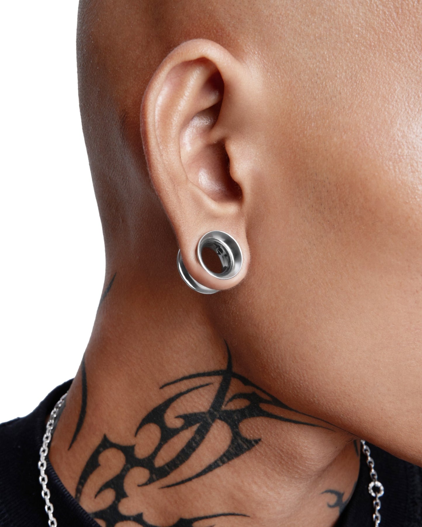 High-polished, customised tunnels designed to amplify the illusion of a larger stretch. Intentionally forged for domed dimensions and depth. Sculpted with fully curved inner walls—a rare feat and the first of its kind in metalwork for tunnels—ASCENSION tunnels channel light across their flawless arcs.