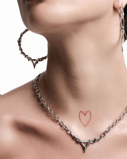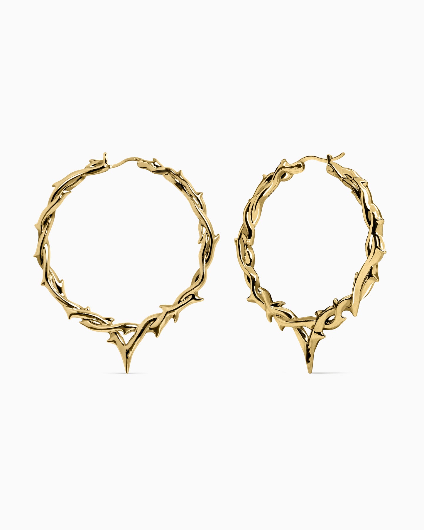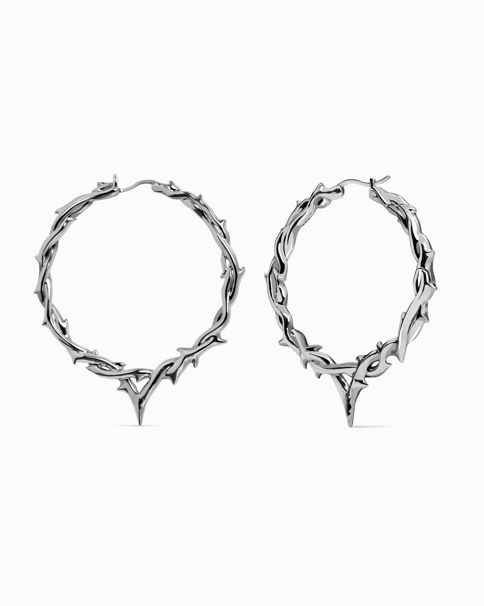 Hoop earrings patterned after wreathed, barbed boughs converging into a delicate v-point at its lowest arc. Ear posts made from 925 Silver - kinder to sensitive skin. Complete your look with other jewelry from the Elysian series.
