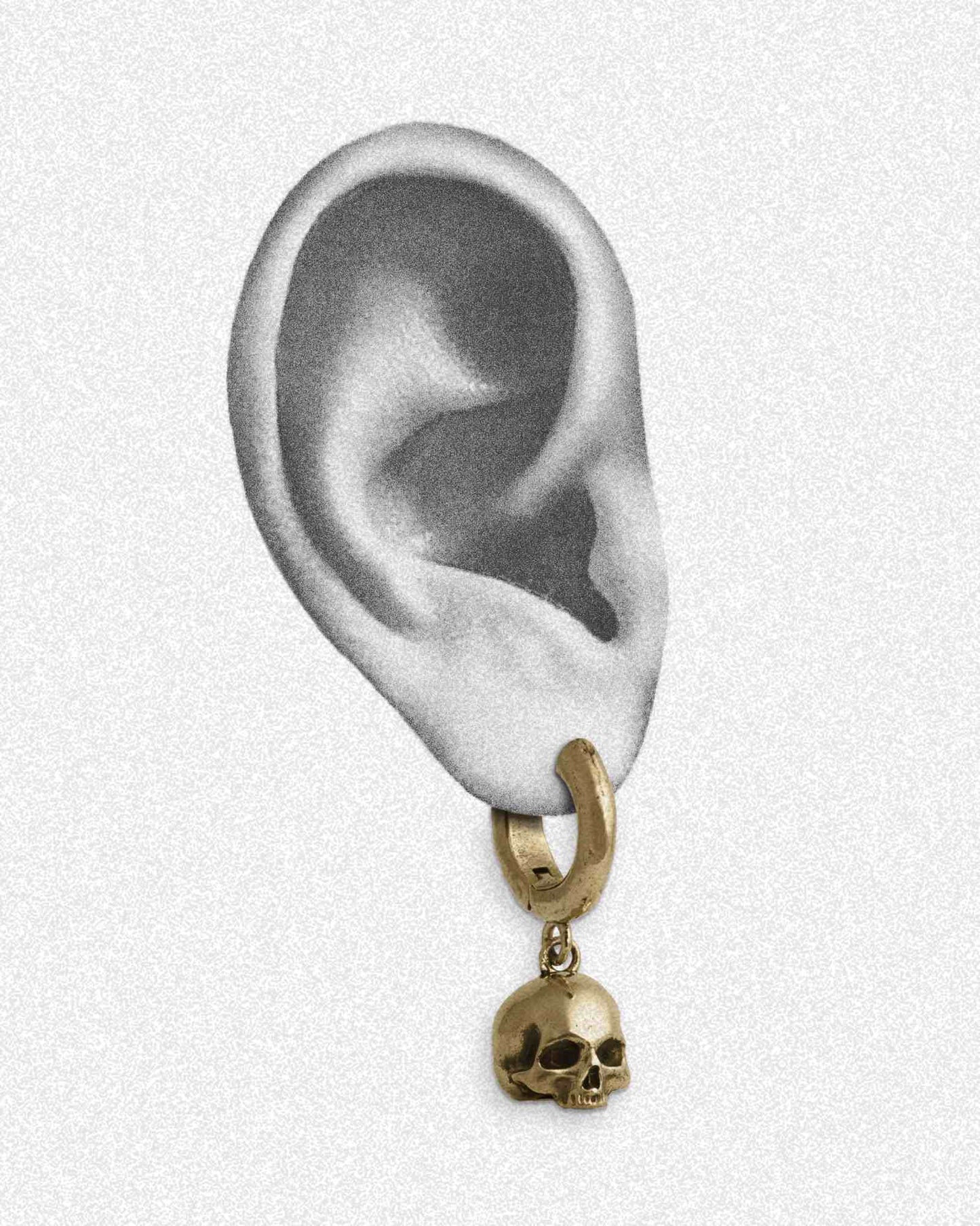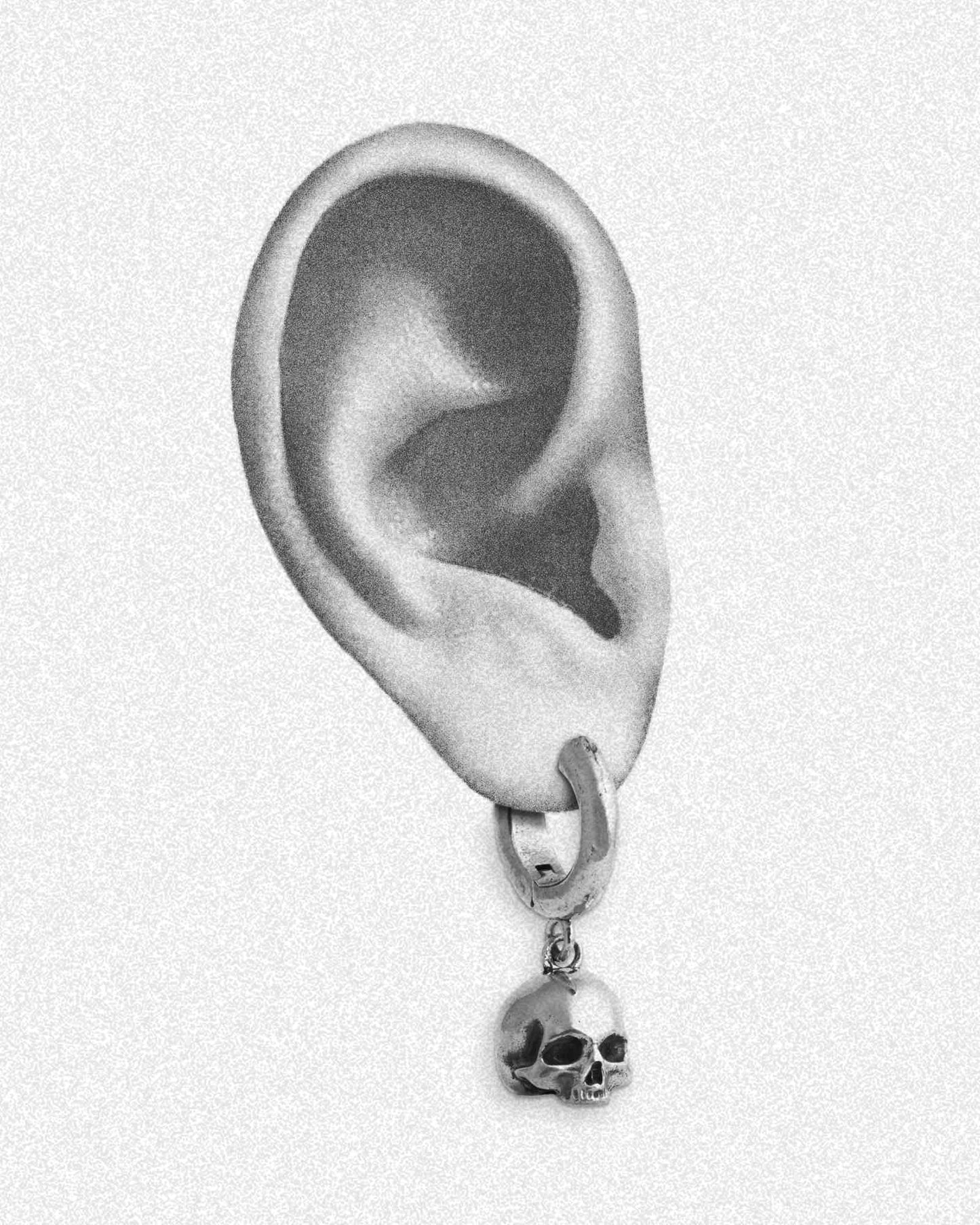 La marque de la mortalité et le porteur désossé de la conscience ; un héritage sombre et durable de ceux qui nous ont précédés. Boucles d'oreilles Huggie avec un crâne humain connecté cinétiquement pour faire écho à votre foulée. Tiges d'oreilles en argent 925 - plus douces pour les peaux sensibles.
