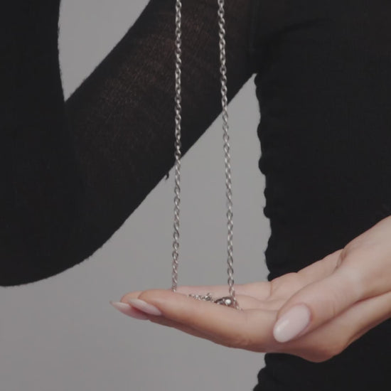A chain necklace bearing a sacred heart diffusing divine flames. Embossed at the centre of the heart lies the Ask & Embla gothic cross logomark. Forged entirely from 316L surgical grade stainless steel for all genders and expressions. Complete your look with other jewelry from the The Sacrament series.