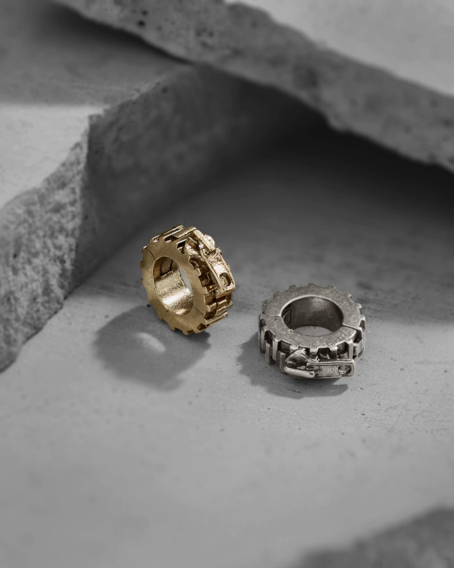 機械的なシフトで噛み合う歯は、素早い締め付けとギザギザの砂が融合した産業革命の痕跡です。