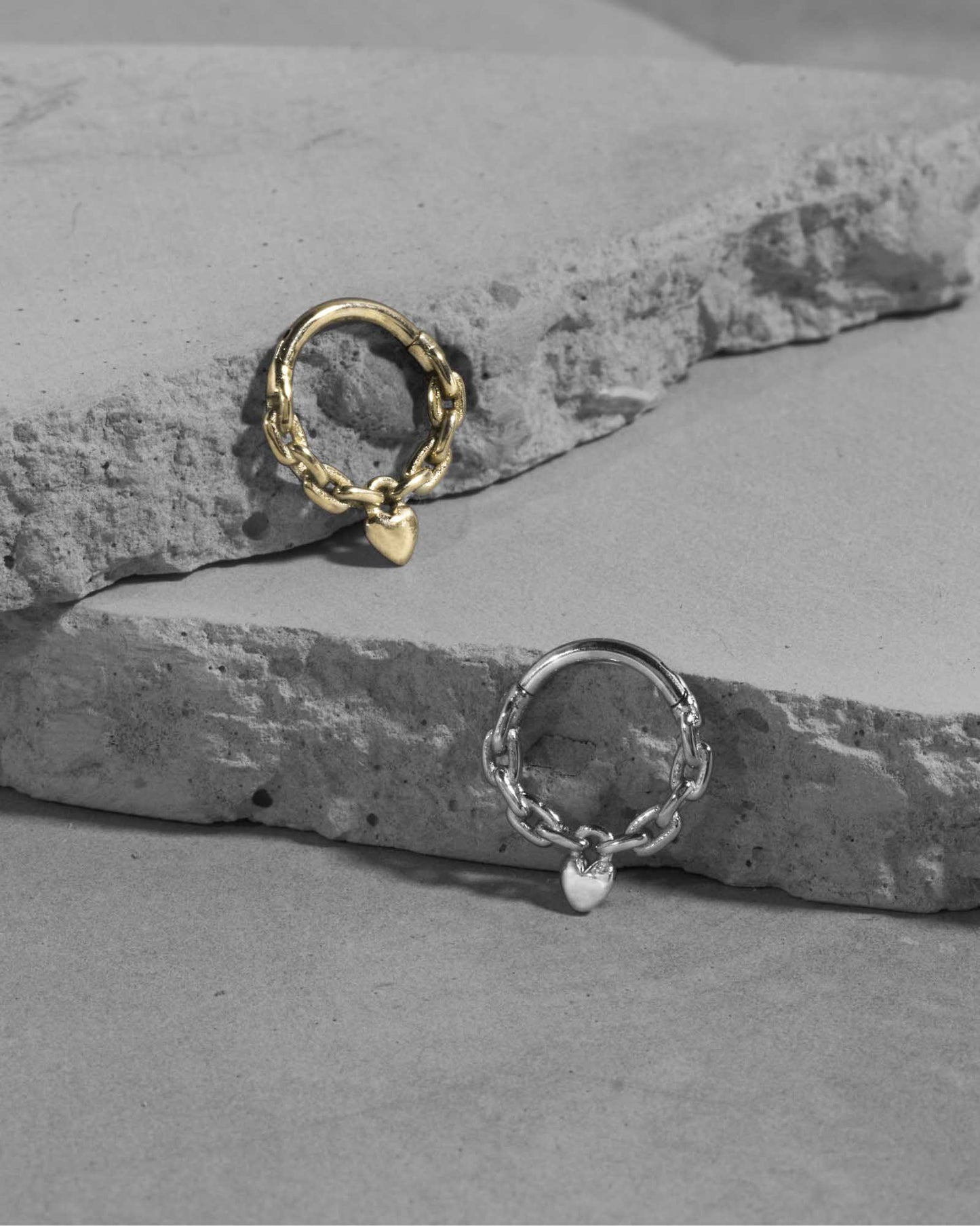 スチームパンクの心に誓いを立てるために縛り付けられています。ファンと愛の敵のために作られた、亜美のオルタナティブ作品。わずかに可動する 2 本のチェーンの間に、ロックされてぶら下がっているハートが特徴のクリッカー。
