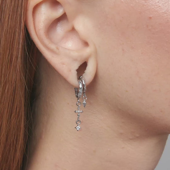 A ring stack featuring dangling silhouettes of a gem, a spike, and our Ask & Embla logomark. Wear this stack between your favourite ring stacks to build a layered, textured statement. Made of stainless steel. Shop the Sigil series.