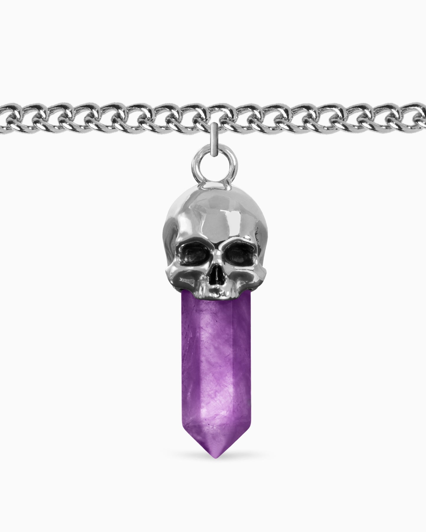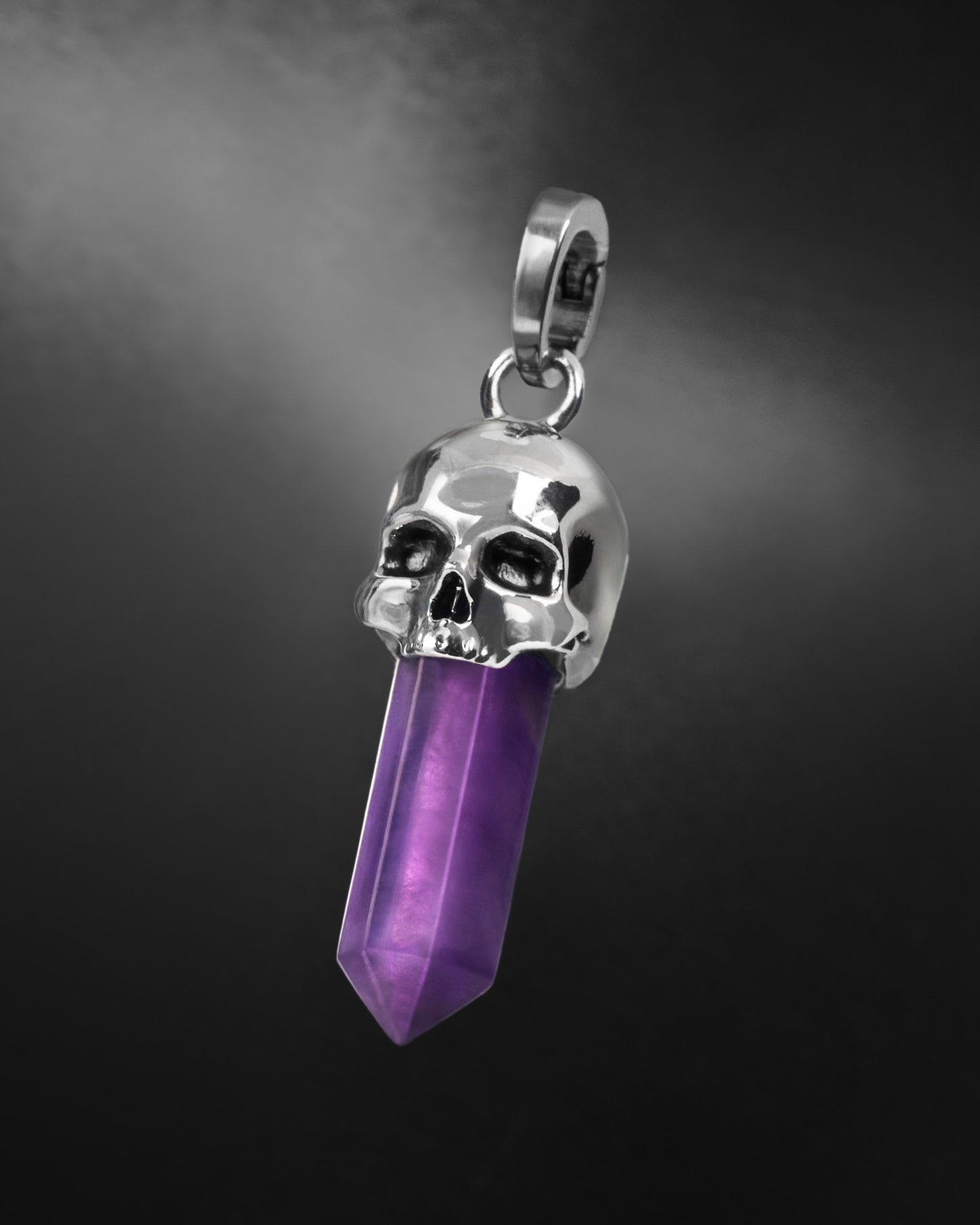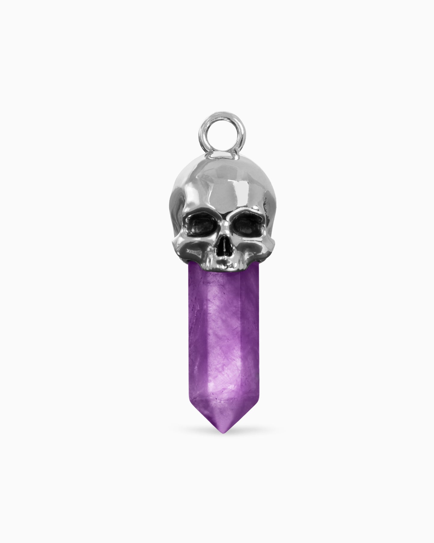 A charm of a cranium atop a mesmerising amethyst crystal bullet, featuring a handbrushed antique patina finish. This charm comes with a complimentary charm clasp for easy attachment to any base jewelry. Compatible with any base jewelry of your choice from The Charm Lab series. Collect charms and design your own collection that tells your story.