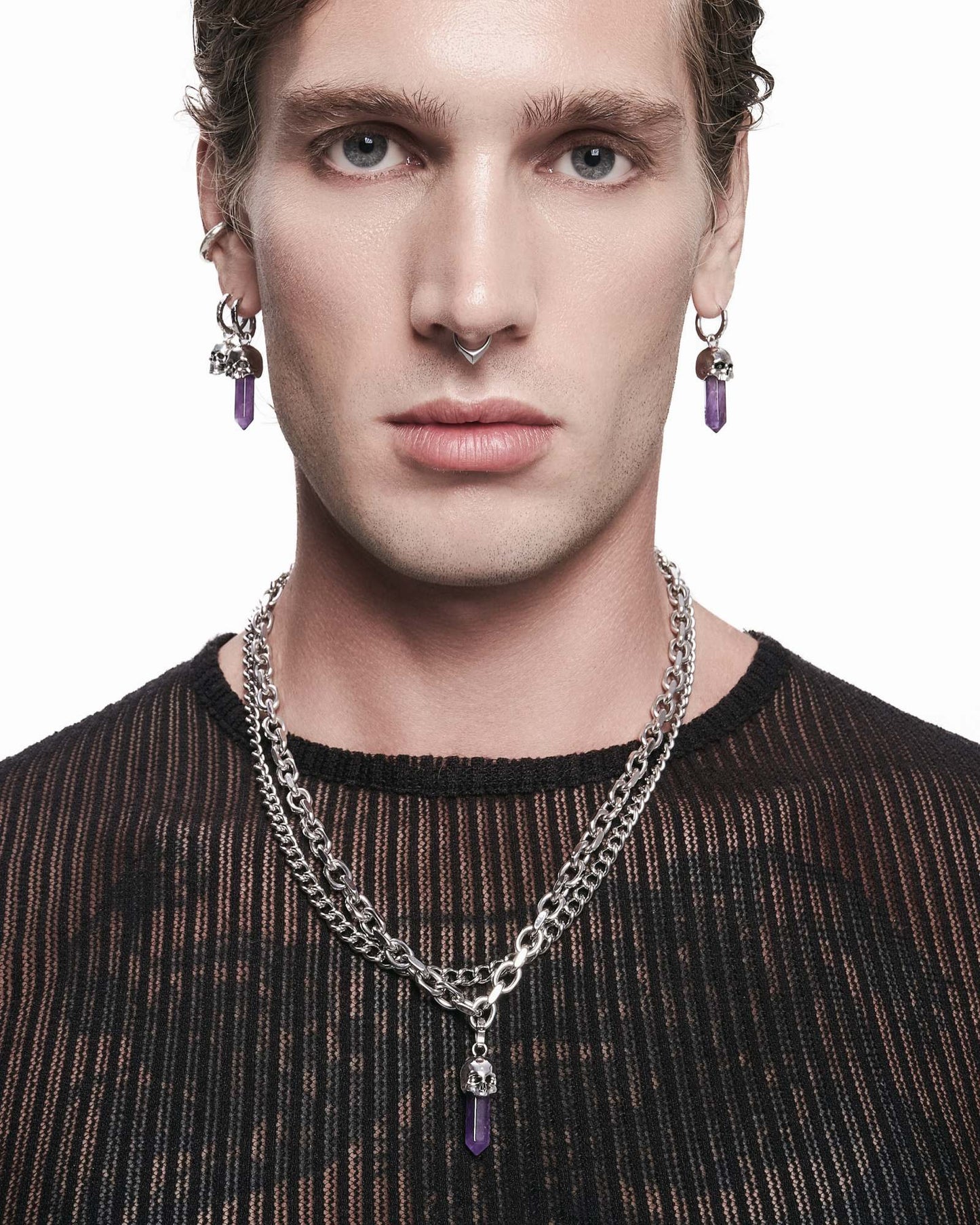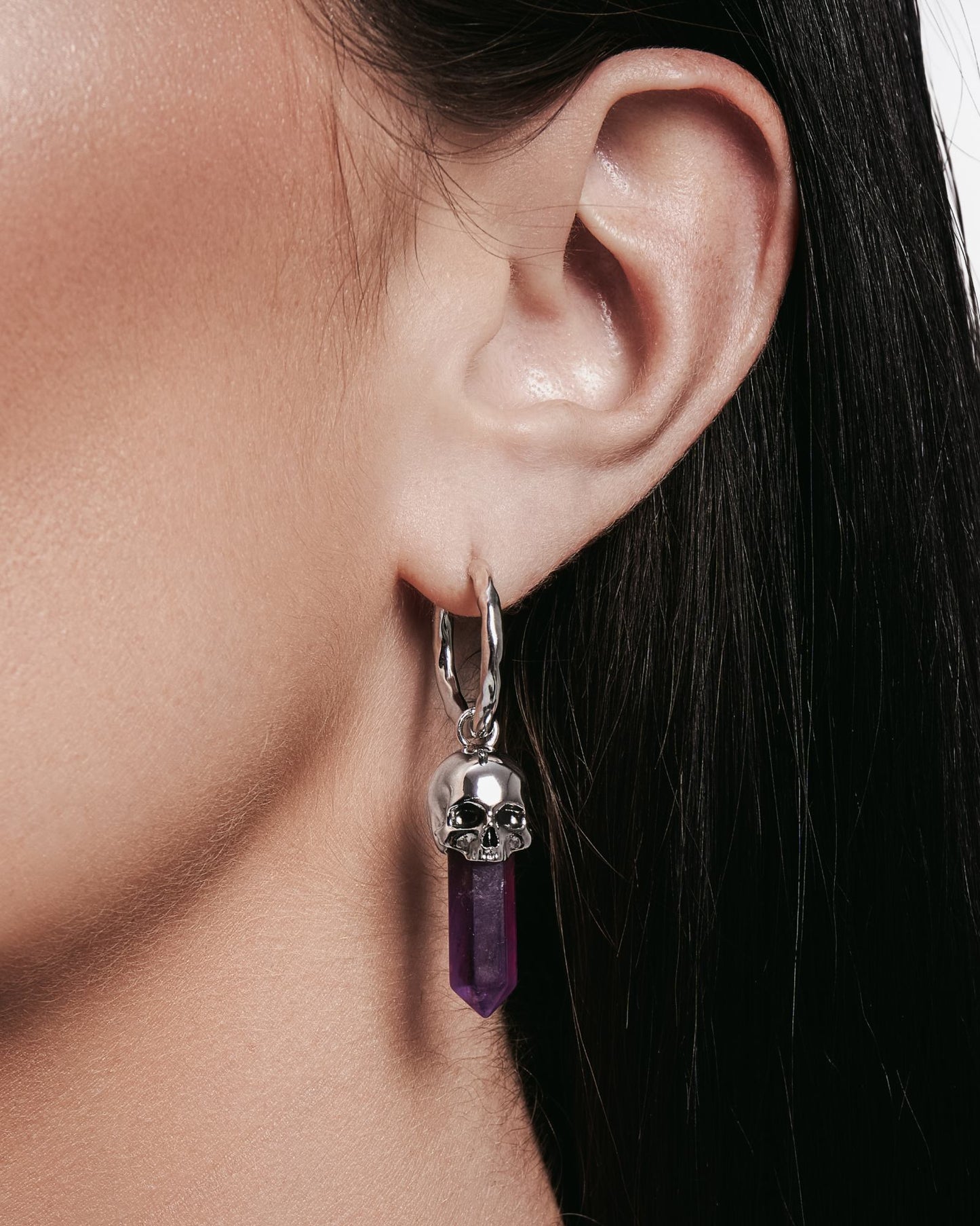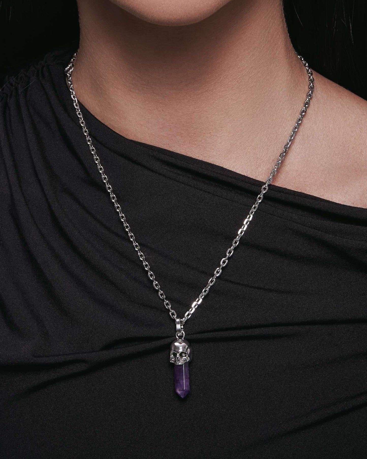 A charm of a cranium atop a mesmerising amethyst crystal bullet, featuring a handbrushed antique patina finish. This charm comes with a complimentary charm clasp for easy attachment to any base jewelry. Compatible with any base jewelry of your choice from The Charm Lab series. Collect charms and design your own collection that tells your story.