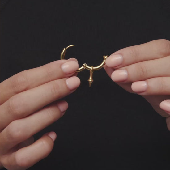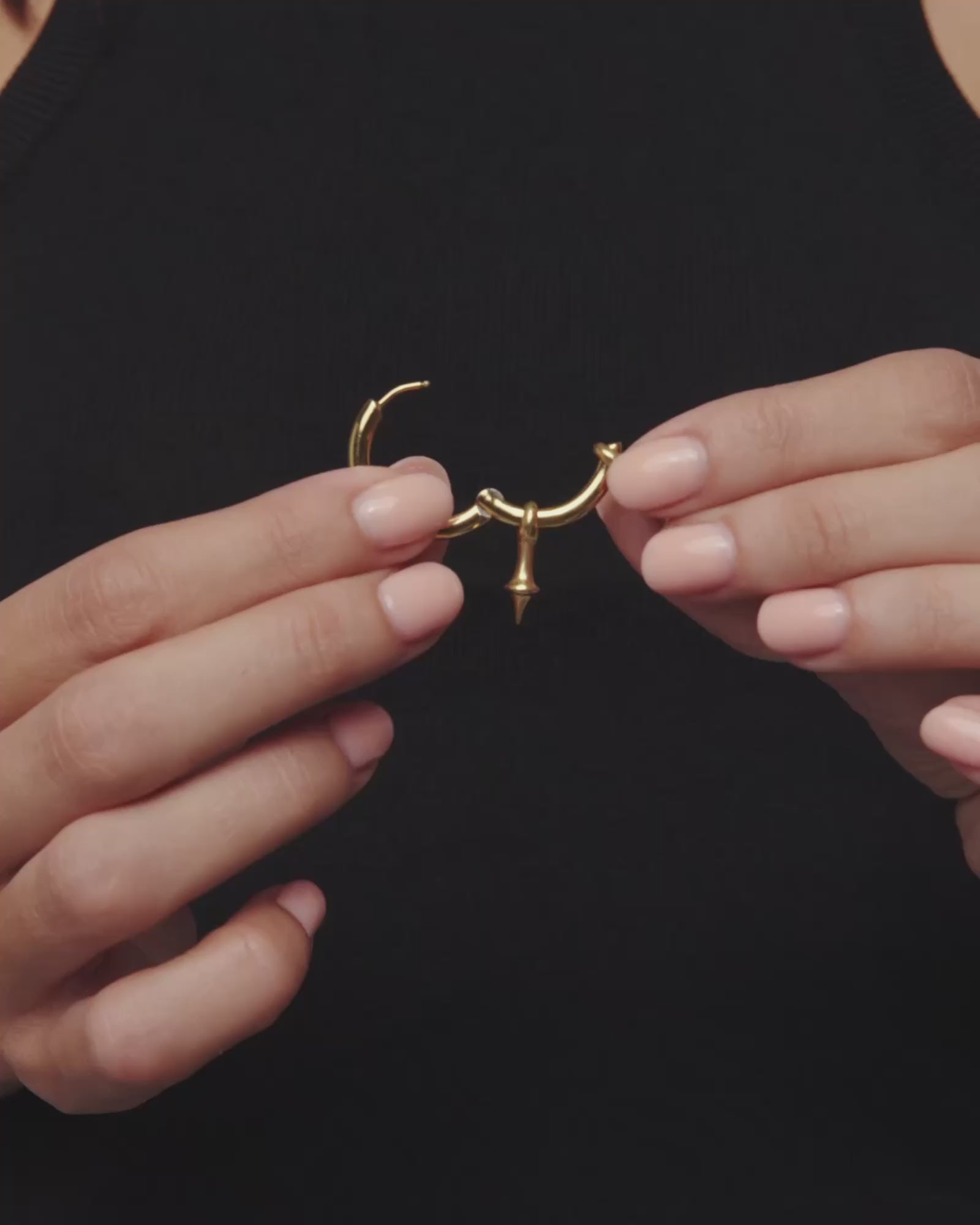 Hoop earrings featuring moveable and detachable spindled spikes, allowing you to customise its silhouette. Made entirely from stainless steel. Shop the Eclipse Moonbeam series.