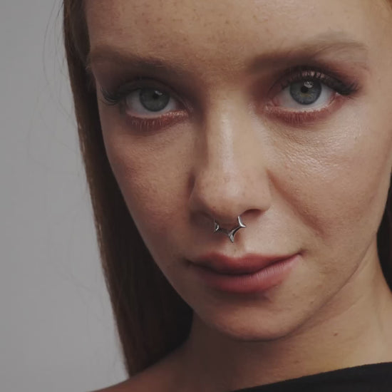 A set of three clickers forged in ascending forms—three spurs, two, and one—tracing the arc of transformation. Features the GENESIS I Clicker, GENESIS II Clicker, and GENESIS III Clicker. Forged entirely from 316L surgical grade stainless steel for all genders and expressions. Suitable for septum, lobe or whichever piercings you deem fit. Complete your look with other jewelry from the GENESIS series.