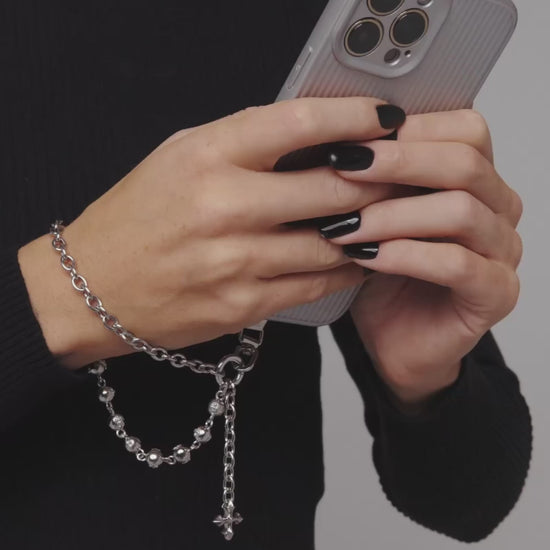 A transformable chain phone strap made of hardware from our necklaces. Features modular, detachable components—including an Ask & Embla Sigil Charm. Attach your own charms for a personal touch. Made entirely from stainless steel.