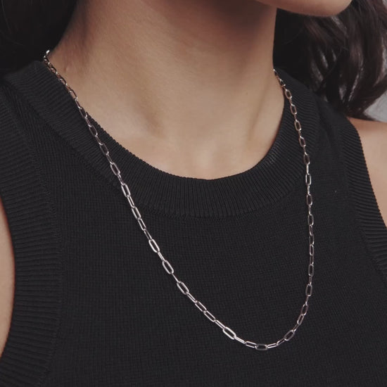 A demi-fine and genderless 925 sterling silver modular cable chain. Features an adjustable length. Shop the Lynx series.