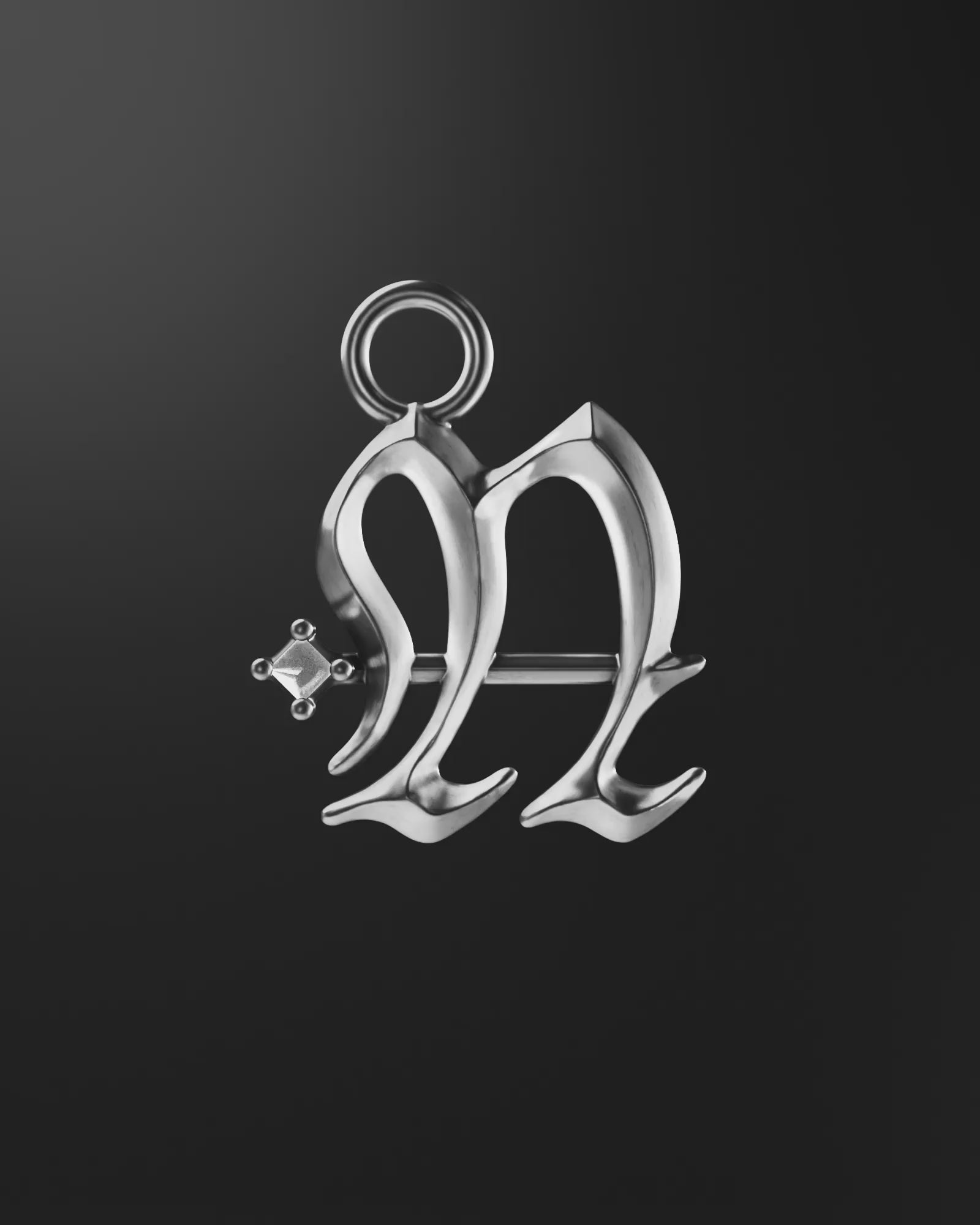 Custom mini blackletter charms handcrafted with precision entirely from 925 sterling silver. Each alphabet features a cubic zirconia gem bejewelled on a spindled star—a symbol derived from the cross in our Ask & Embla logo. Comes with a complimentary charm clasp for easy attachment to any base jewelry. Compatible with any base jewelry from The Charm Lab series.