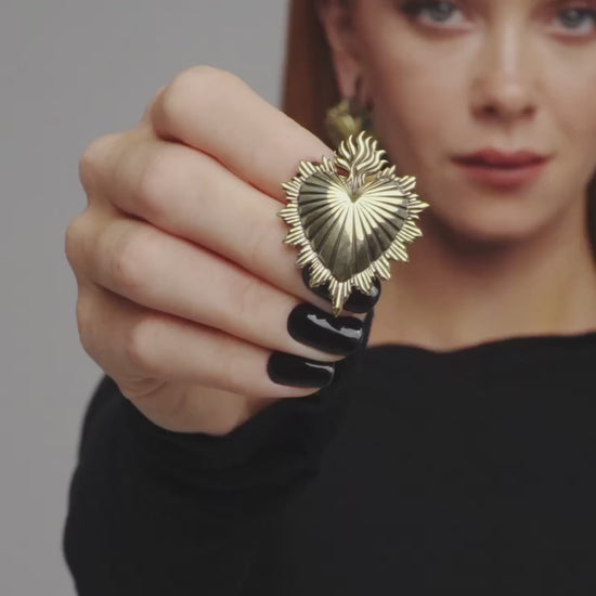 Hangers of hearts diffusing divine rays of light. Made entirely from stainless steel. Shop The Sacrament series.