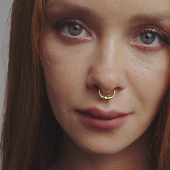 Crescent formations to eclipse your everyday in lunary radiance. A resting moon face on a crescent cut. Style this clicker alone for minor moons or add to an ear stack for a glimpse of cosmic bliss. Wear it on your helix, ear lobe or septum piercings for a snug fit.