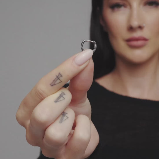Synthesis — Where elements merge, creation emerges. A fusion of ruggedness and refinement, our 925 Silver Synthesis Earrings exude a polished, hand-forged, and uniquely tactile texture, with a custom-made huggie body designed to keep charms secure, allowing for direct charm attachment with or without clasps.