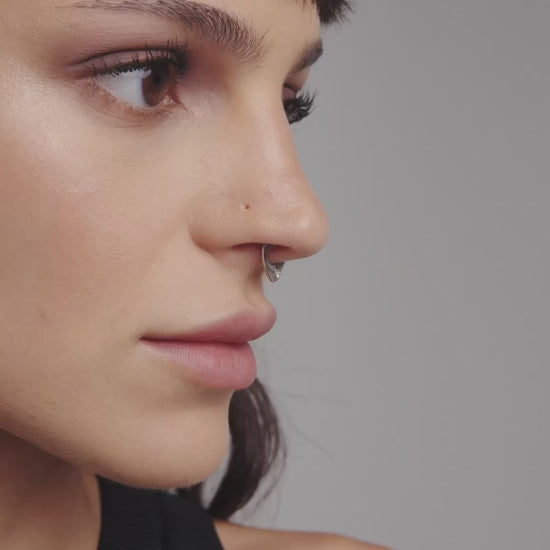 A reversible upturned teardrop clicker bejewelled with a cubic zirconia gem on one side. Made entirely from stainless steel. Shop the Vox series.