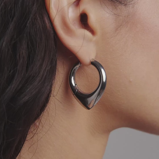 Bold, upturned teardrop earrings. Made entirely from stainless steel. Shop the Vox series.
