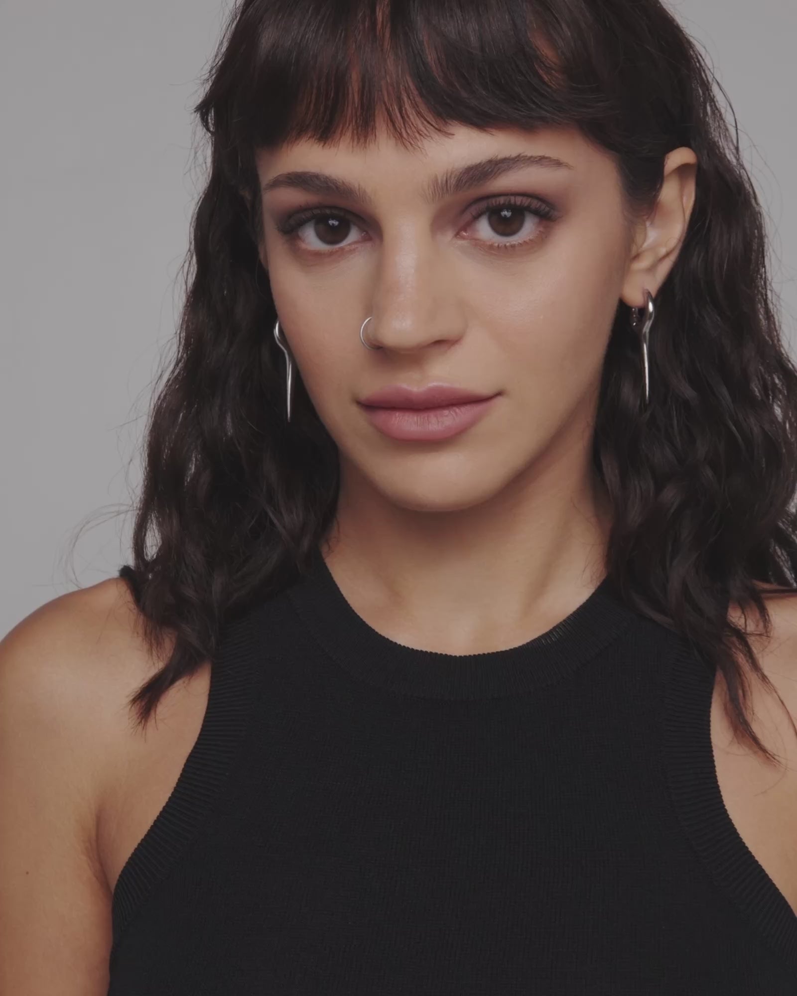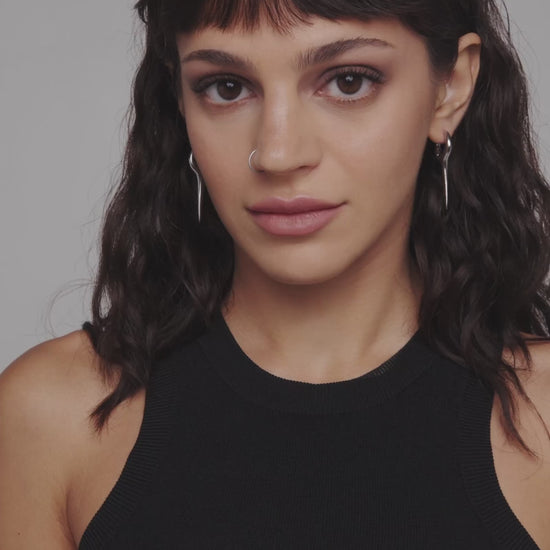 Upturned teardrop earrings with a long, spear accent. Made entirely from stainless steel. Shop the Vox series.